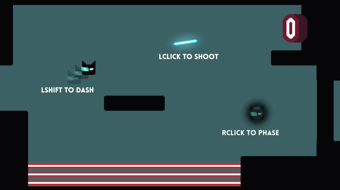 In my game, State Switch Escape, your job is to find ways of interrupting your three abilities, Dash, Laser, and Phase, to get past the obstacles and escape from the lab.